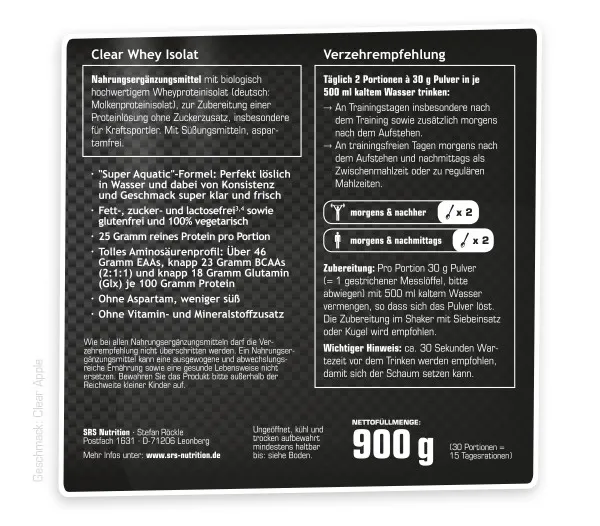 Original Aqua Clear Whey – SRS Nutrition(europäischer Rohstoff).