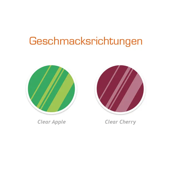 Angaben für Geschmacksrichtung „Clear Cherry“ (für andere Geschmäcker bitte oben im Dropdown-Menü die gewünschte Variante wählen)