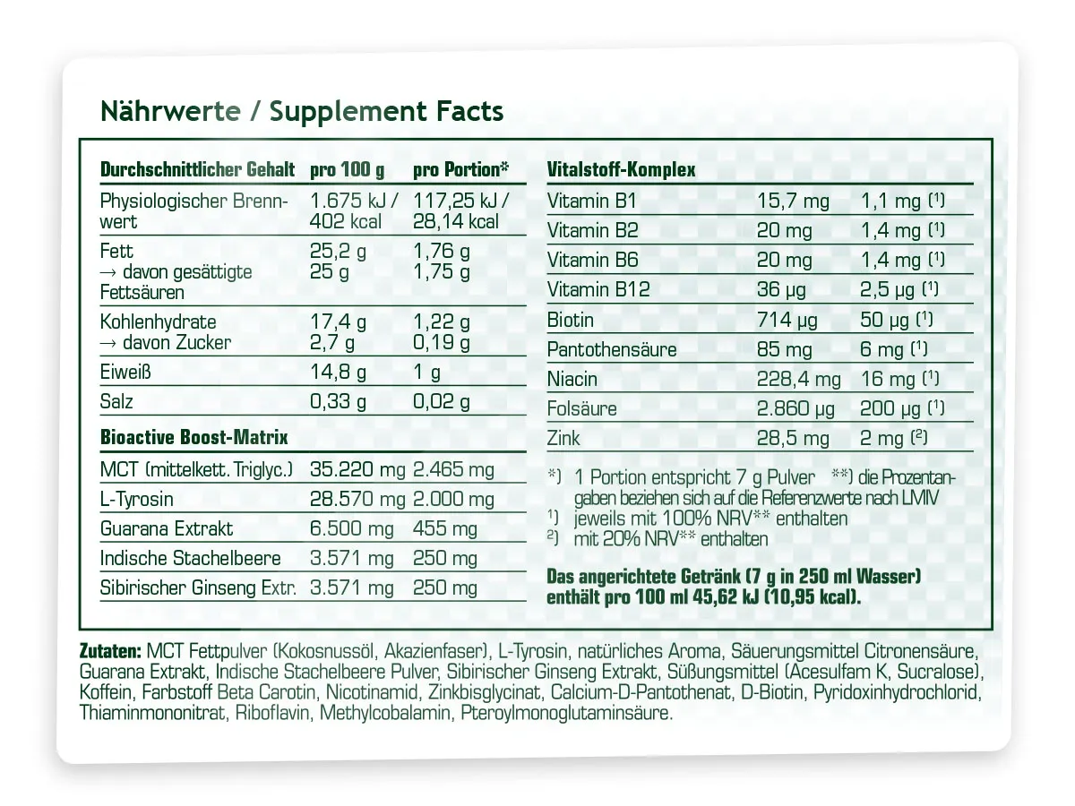 Der fruchtige „Fruit Punch“-Geschmack besteht zu 93,5% aus dem nativen Wheyproteinisolat. Der offizielle Eiweißgehalt berechnet nach der gesetzlich vorgeschriebenen Formel (Stickstoff x Faktor 6,25) ergibt 80,6 g pro 100 g Pulver – diese Angabe ist verpflichtend (auch wenn sich leider nicht jeder Hersteller daran hält). Der tatsächliche Eiweißgehalt in der Trockenmasse liegt bei ca. 85,3%.
